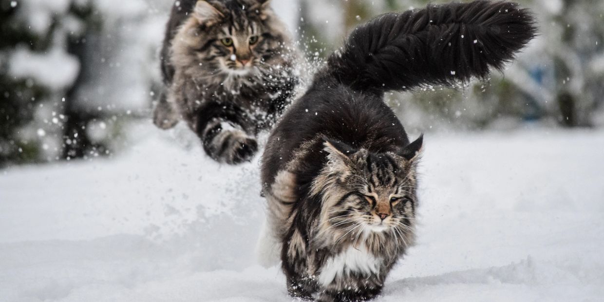 • Their water resistant coats and large, tufted paws are like built in snow gear.
